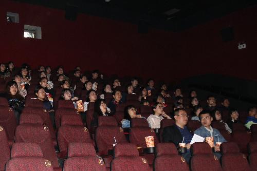 党委组织全体学生党员在观看《老师好》电影。