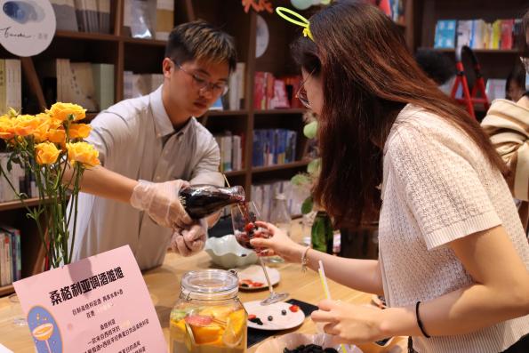 “市集派对”将葡萄酒展会与创意市集结合,充分开发葡萄酒的可能性,打造一众丰富有趣的活动,如“桑格利亚摊摊”自由搭配水果与酒、“盲品摊摊”感受葡萄酒世界的乐趣、“瓶绘摊摊”自由艺术创作等7个摊位,入口处领取的糖果是逛市集的“货币”,让同学们自由、放松的同时享受惊喜体验。“酒理课堂”为同学们提供了走进葡萄酒世界的钥匙,1.5小时就足以开启一段新的探索。晚间时段的“校园live”中,大学生艺术团电声乐队极具感染力的表演施展着使人忘记烦恼和疲惫的魔力,同学们在音乐的流动中感受律动与共鸣。