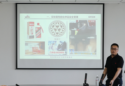 纪克攻就实验室危险化学品安全管理进行了知识讲座,详细讲述了实验室危化品的分类、存放、采购、使用等方面的管理规定和操作要点,通过分析多个危化品操作不当引起的安全事故,强调大家要规范操作,增强自我安防意识,加强实验室安全的教育,尽职尽责。