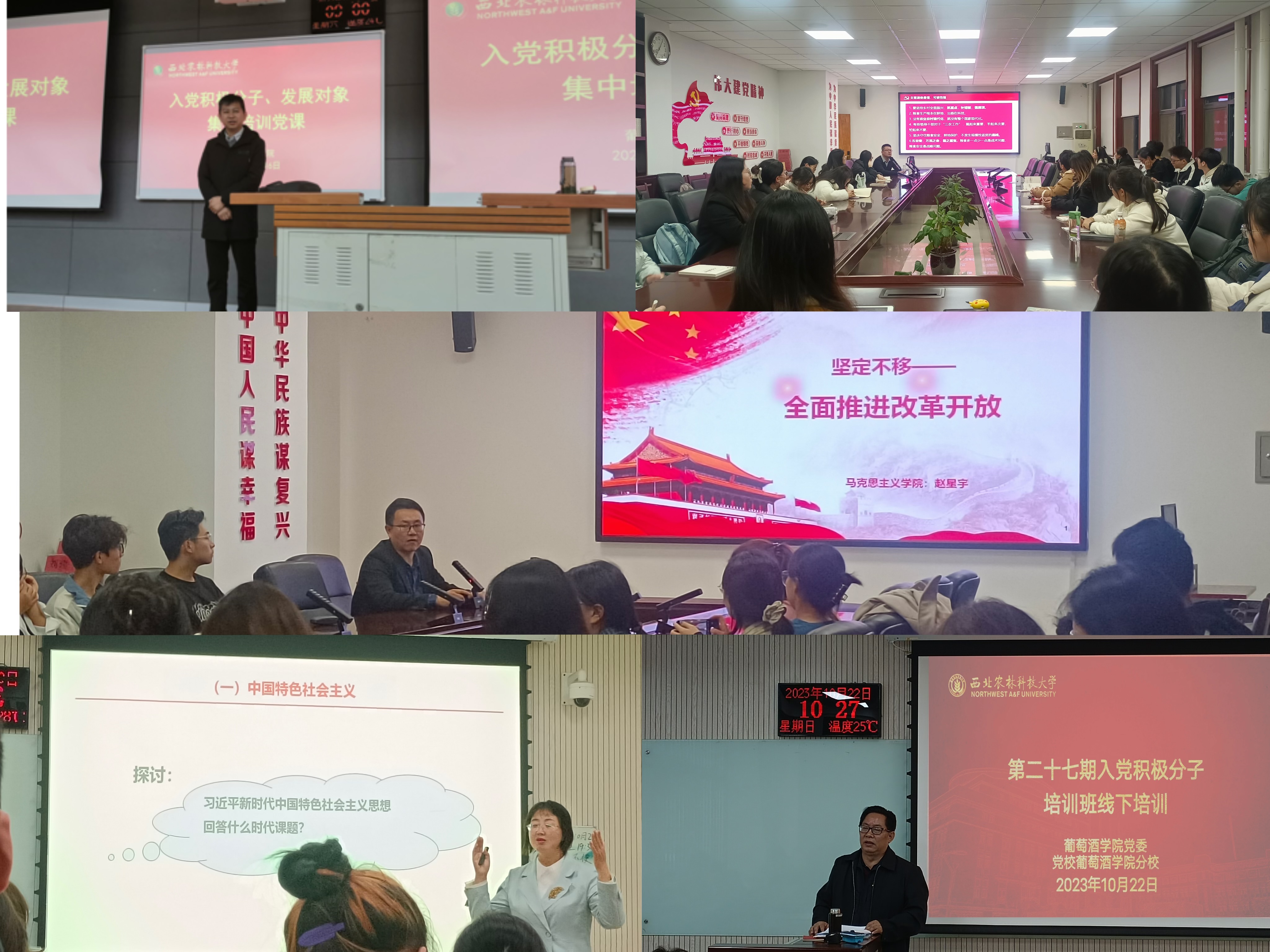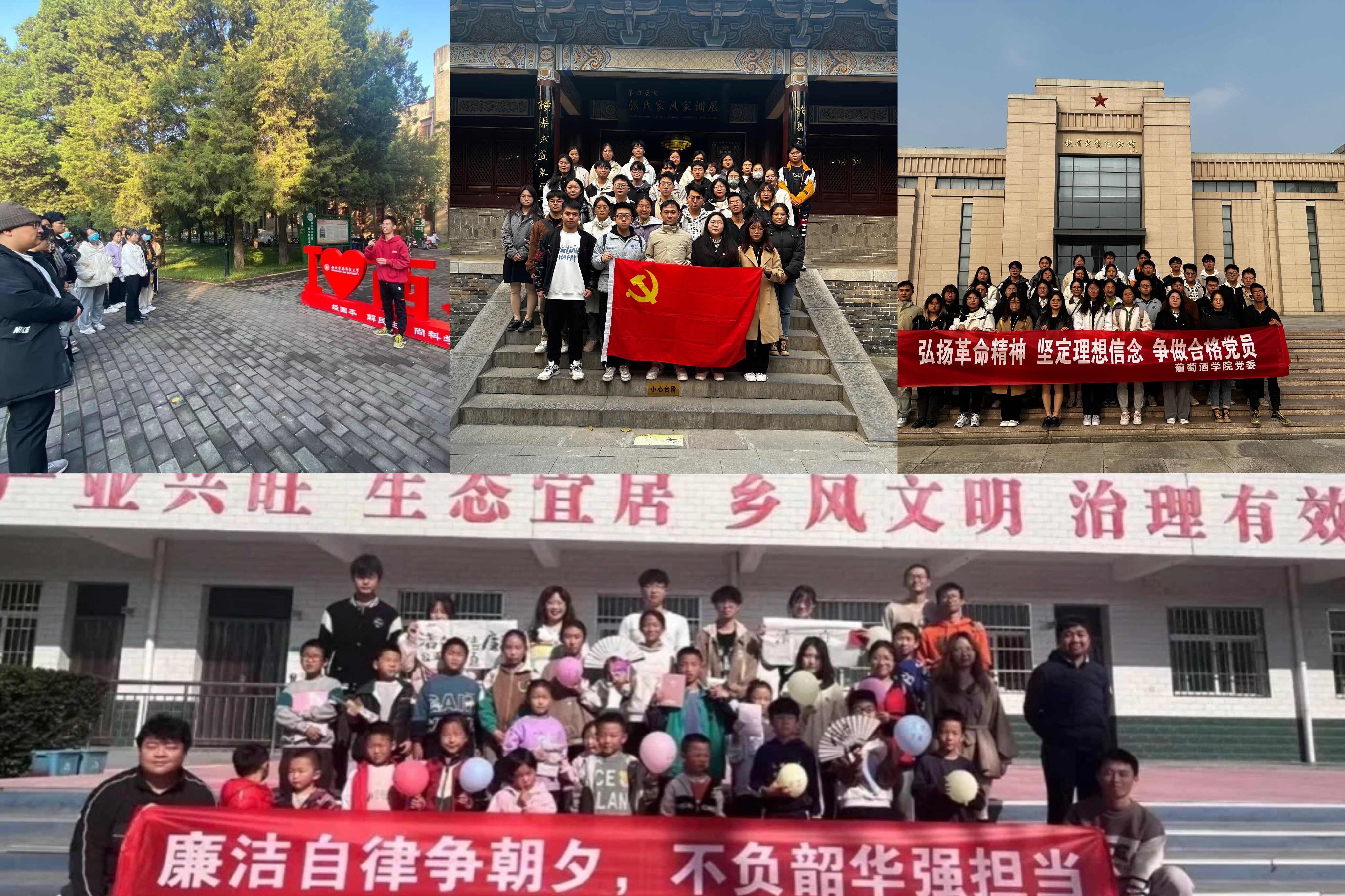 实践课堂激发知行合一。利用好沉浸式党课、红色资源路线,以实景、实例、实事为载体,融情于景、情景交融,进一步坚定学员理想信念。邀请校史校情宣讲团讲述学校艰辛开拓、蓬勃发展、全面腾飞发展史,激励同学们秉承西农精神、讲好西农故事、奋发有为;组织前往扶眉战役纪念馆、张载祠等爱国主义基地,感悟革命理想信念,领会中华优秀传统文化中千年前爱国情怀的质朴表达。结合学员特长优势,纳入“我为师生办实事”主题活动中,开展环境美化、学业小导师、考研经验分享、新集村支教等志愿服务;形成以学生社区、田园实践、实验室为依托的“田间微学习”“楼宇微讲”“课题组微讲坛”等学习型课堂,激励全体学员传承红色精神、汲取奋斗前进之力。