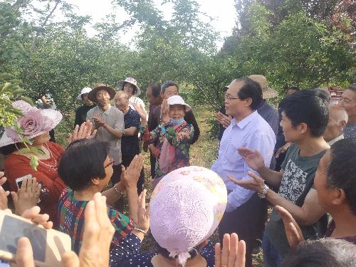 发挥科教技术优势,深入田间地头现场指导。5月23日下午,胡俊鹏一行深入乾落村、坊西村及灵井村的田间地头开展现场指导工作。坊镇政府党委书记董亚斌,纪委副书记郝玉周,驻合阳乾落村第一书记韩锁昌,坊镇政府科技副镇长张聪聪等陪同。专家教授分别从葡萄施肥、灌水、病虫害防治等综合管理技术以及花椒栽培管理等方面为农户进行技术指导,并针对农户提出的问题进行细致解答。农户们受益匪浅,期待专家教授们的再次到来。