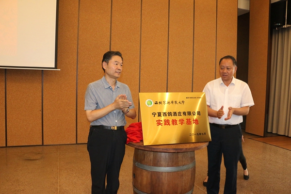 张言志庄主的西鸽酒庄还举行了学校校外实践教学基地授牌仪式,李兴旺与曹凯龙共同为基地揭牌。根据协议,双方将从人才培养、科学研究、社会服务等方面加强产、学、研深度合作,助力宁夏葡萄酒产业人才培养和技术进步。